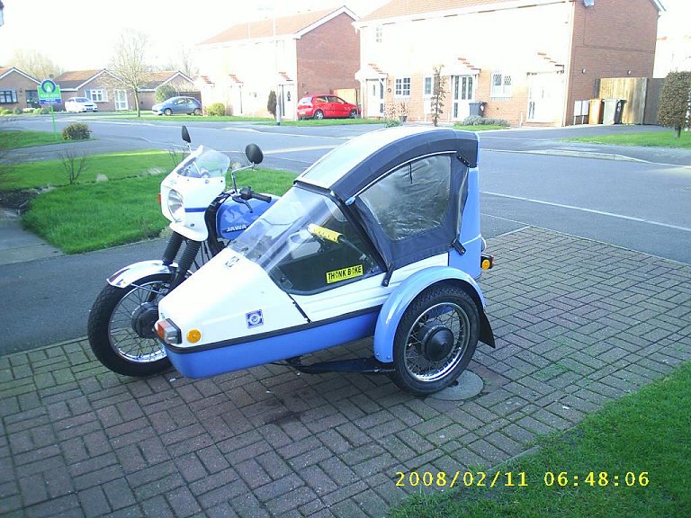 Prague. Car frame covered by leatherette and powered by a Jawa 350cc