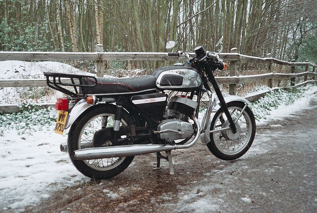 Here is a photo of my 250cc bike which is the same model as shown in your leading photo of Ian Robert's bike (obviously in much better condition). Mine is original apart from the mirrors, and the tank was resprayed. It is not really surprising that the model was rare, as, even though I enjoy it now regards general handling and 4th gear throttle response between 60 and 90 km/h, which is nice for tight roads, I believe the 175 was better a performer overall. Also, looking at the saddle on Ian Roberts bike, I think I have an economy version, albeit with aluminum rims.